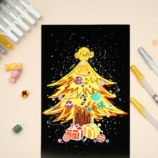 Create detailed works of art with the Ohuhu 3 Colors Metallic Ink Pen Set. The set includes 6 white, 3 gold, and 3 silver metallic pens, each with an ultra-fine 0.8mm tip. Add mesmerizing effects, glistening snow, or captivating highlights to your work with ease. Make your ideas come to life with the Ohuhu 3 Colors Metallic Ink Pen Set.
