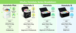The new Ohuhu Supreme Brush is softer and more flexible than the Honolulu series, making it perfect for precise detailing and offering greater control. The Chisel tip excels at covering large areas, adding texture and variety to your strokes.