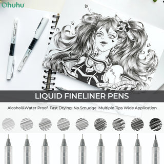 Ohuhu Liquid Fineliner Pens can create gorgeous black-and-white painting and collaborate with watercolor or alcohol markers to provide essential stokes. Don't worry about ruining your masterpiece thanks to the quick-drying, water and alcohol proof ink.