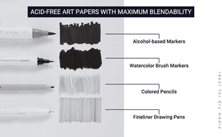 It's the perfect combo of durable and delicate. This 120LB (200GSM) heavyweight paper has a smooth, flat surface that prevents bleeding, smudging and feathering for clean artwork. It is a great choice sketchbook for most of DRY art medias. From alcohol markers to solvent markers, from colored pencils to charcoal, from pastels to inks, and more!