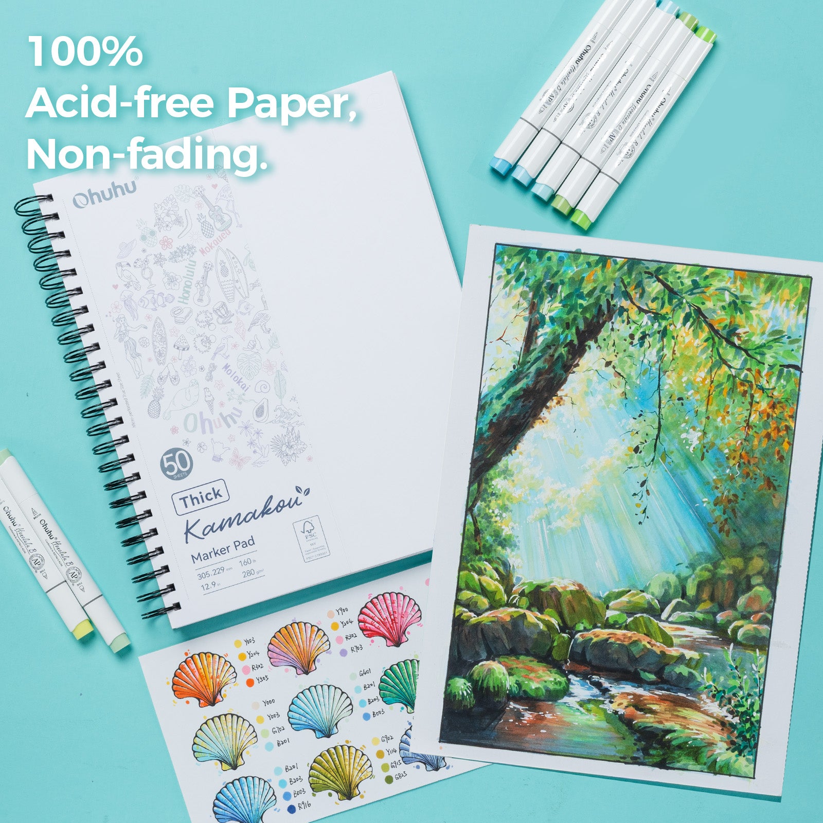 Ohuhu Heavyweight Bleedproof Double-Sided Marker Pad, Spiral-Bound - Kamakou