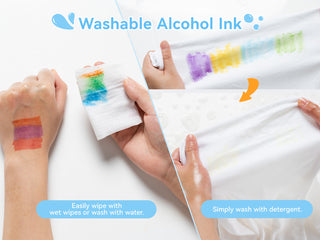 Spills and stains are no problem! The ink rinses off skin easily with soap and water, and most fabric marks come out in the laundry—perfect for young artists and busy creatives who want hassle-free cleanup.